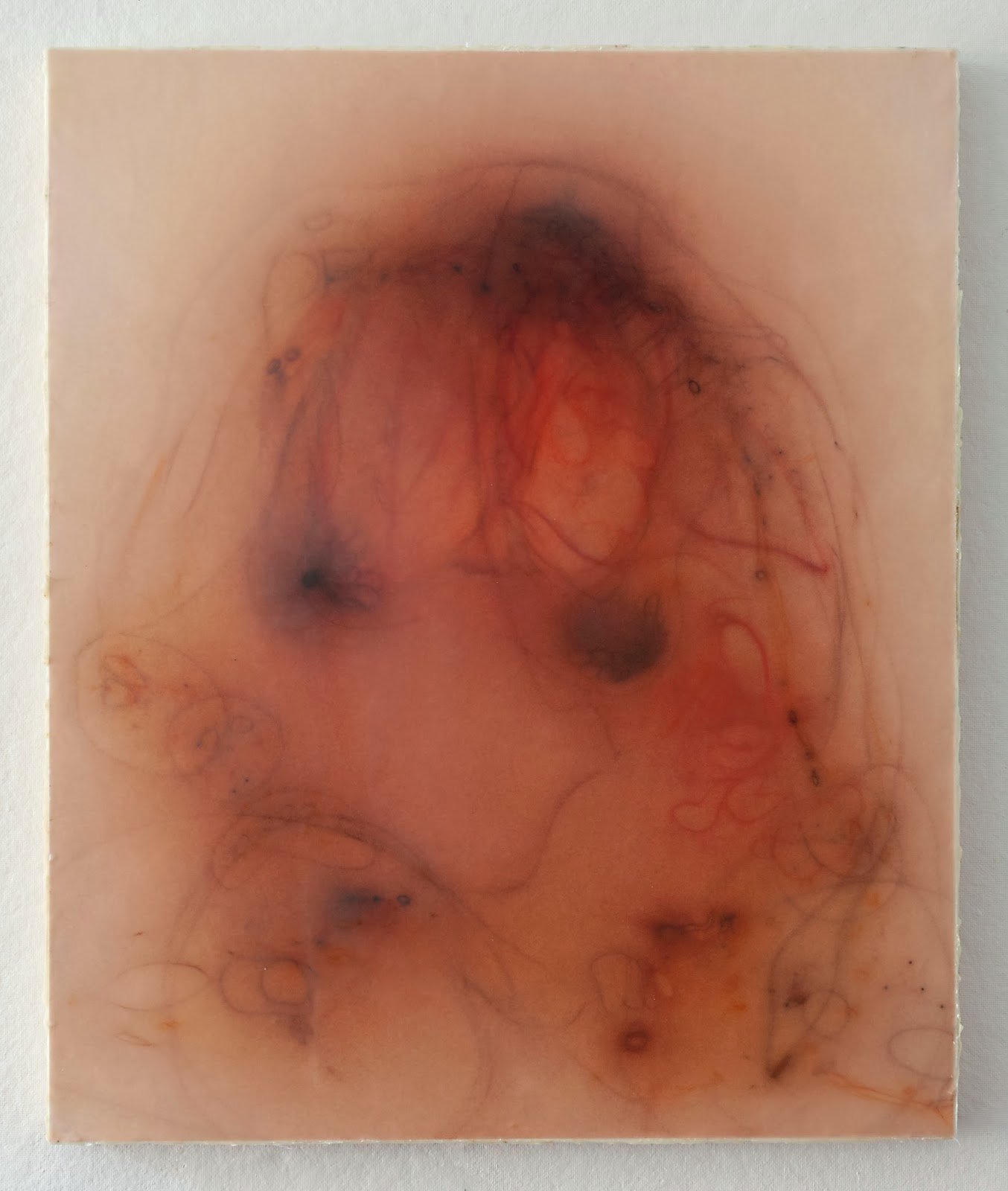 I made the aqua one first. Something bugged me. I wasn’t sure what it was. Composition? Color? I decided to work on another and started the pink one below. I was halfway through the process and getting ready to add the head when it struck me how interesting it looked in it’s unfinished state. So I decided to stop and hung it on my wall.